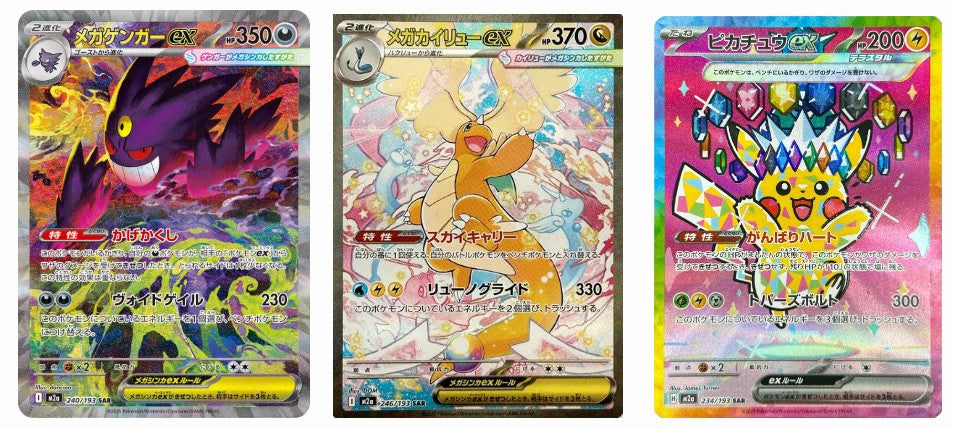 Disse er tre av mange fantastiske kort fra dette settet. Totalt er det hele 17 Special Art Rares, 20 Art Rares, 10 Mega Attack Rares og 2 Mega Hyper Rares å samle på!
